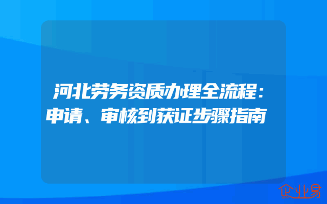 - 河北劳务资质办理全流程:申请、审核到获证步骤指南