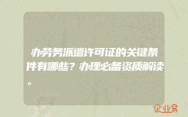 - 办劳务派遣许可证的关键条件有哪些?办理必备资质解读。