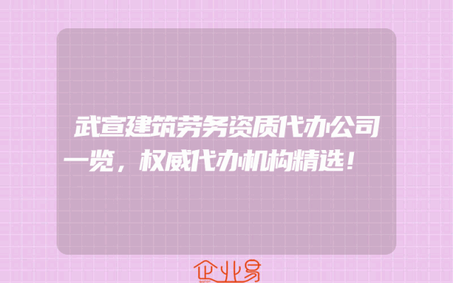 - 武宣建筑劳务资质代办公司一览,权威代办机构精选!