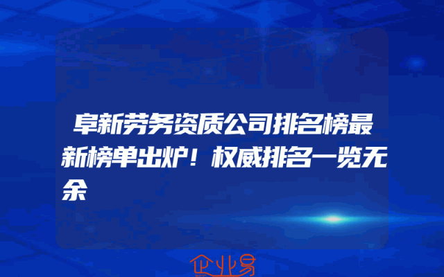- 阜新劳务资质公司排名榜最新榜单出炉!权威排名一览无余