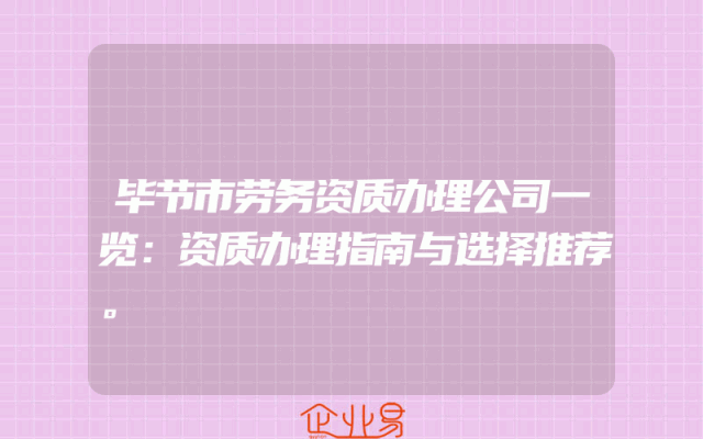 - 毕节市劳务资质办理公司一览:资质办理指南与选择推荐。