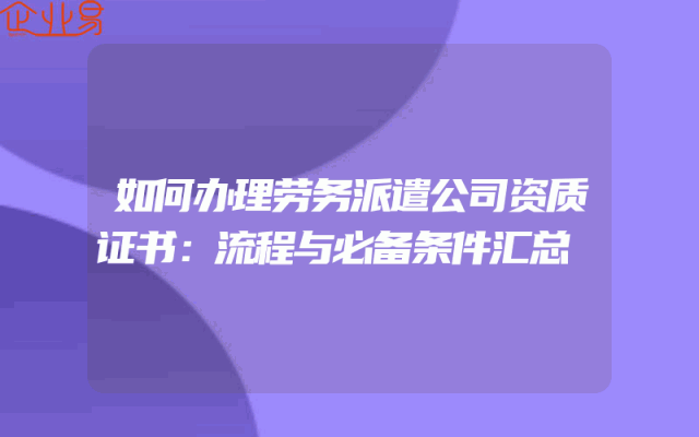 - 如何办理劳务派遣公司资质证书:流程与必备条件汇总