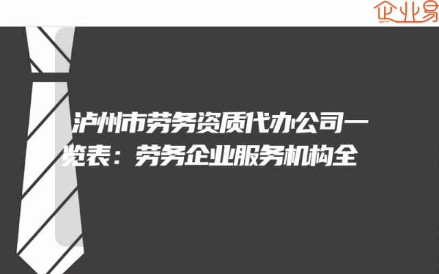 - 泸州市劳务资质代办公司一览表:劳务企业服务机构全