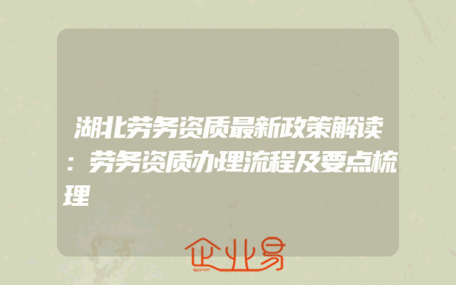 - 湖北劳务资质最新政策解读:劳务资质办理流程及要点梳理