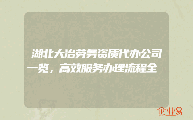 - 湖北大冶劳务资质代办公司一览,高效服务办理流程全