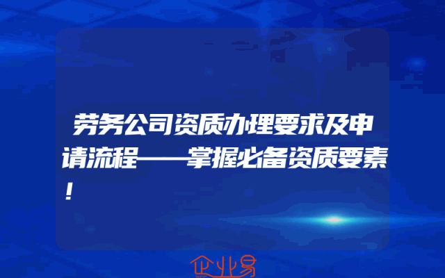 - 劳务公司资质办理要求及申请流程——掌握必备资质要素!