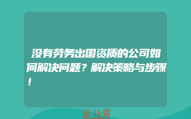 - 没有劳务出国资质的公司如何解决问题?解决策略与步骤!