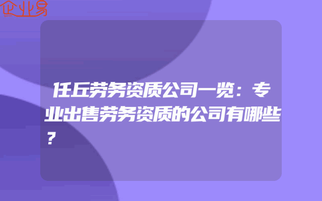 - 任丘劳务资质公司一览:专业出售劳务资质的公司有哪些?