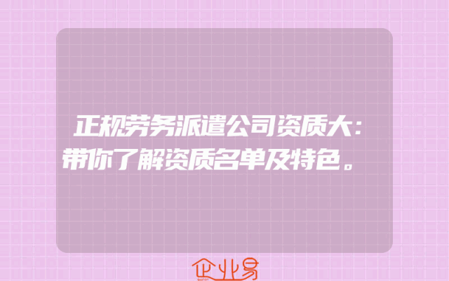 - 正规劳务派遣公司资质大:带你了解资质名单及特色。