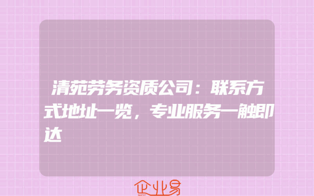 - 清苑劳务资质公司:联系方式地址一览,专业服务一触即达