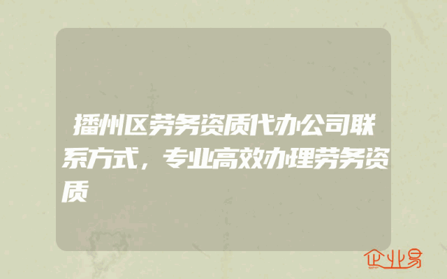 - 播州区劳务资质代办公司联系方式,专业高效办理劳务资质