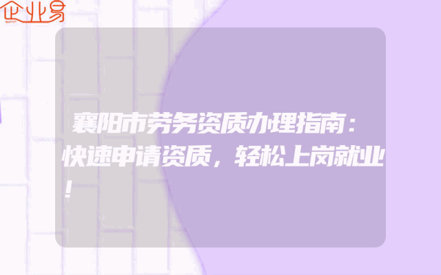 - 襄阳市劳务资质办理指南:快速申请资质,轻松上岗就业!
