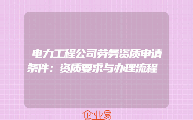 - 电力工程公司劳务资质申请条件:资质要求与办理流程
