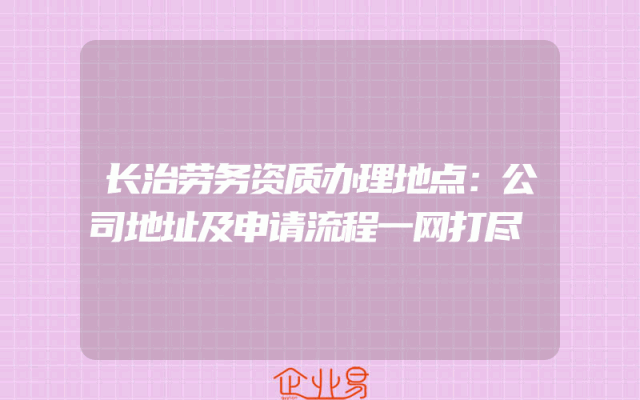 - 长治劳务资质办理地点:公司地址及申请流程一网打尽