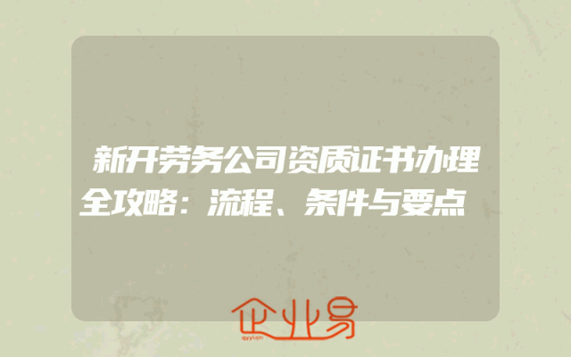 - 新开劳务公司资质证书办理全攻略:流程、条件与要点