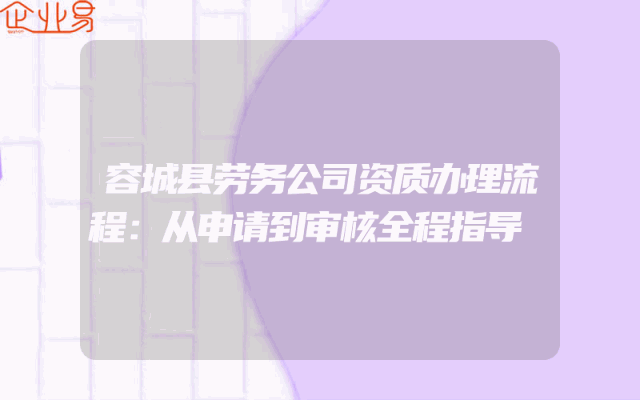- 容城县劳务公司资质办理流程:从申请到审核全程指导