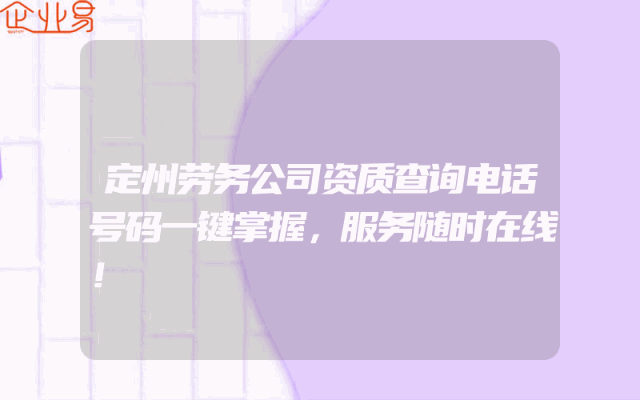 - 定州劳务公司资质查询电话号码一键掌握,服务随时在线!