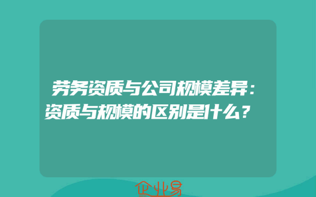 - 劳务资质与公司规模差异:资质与规模的区别是什么?