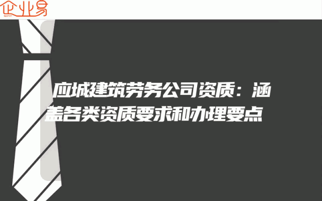 - 应城建筑劳务公司资质:涵盖各类资质要求和办理要点