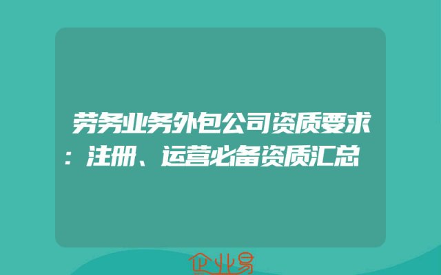 - 劳务业务外包公司资质要求:注册、运营必备资质汇总