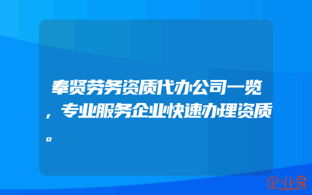 - 奉贤劳务资质代办公司一览,专业服务企业快速办理资质。