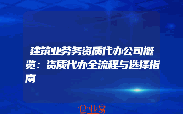 - 建筑业劳务资质代办公司概览:资质代办全流程与选择指南