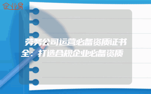 - 劳务公司运营必备资质证书全:打造合规企业必备资质