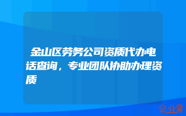 - 金山区劳务公司资质代办电话查询,专业团队协助办理资质
