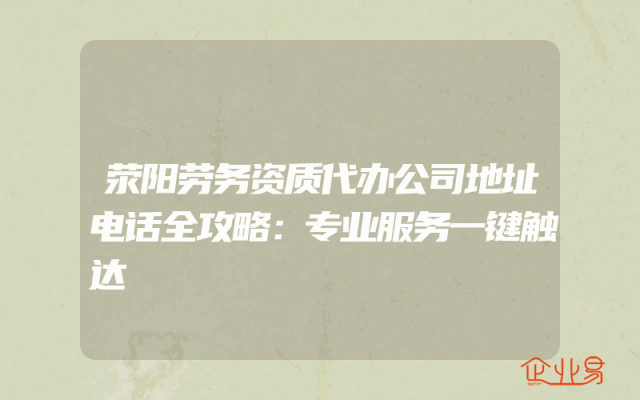 - 荥阳劳务资质代办公司地址电话全攻略:专业服务一键触达
