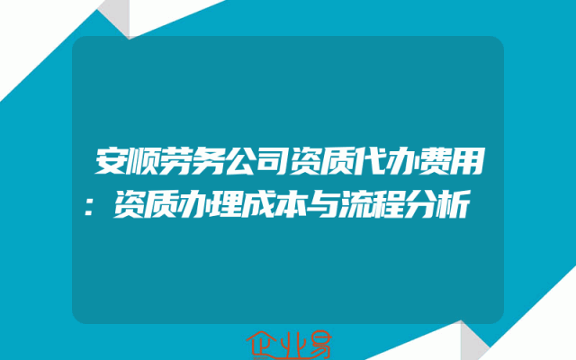 - 安顺劳务公司资质代办费用:资质办理成本与流程分析