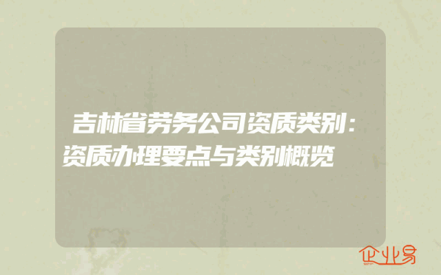 - 吉林省劳务公司资质类别:资质办理要点与类别概览