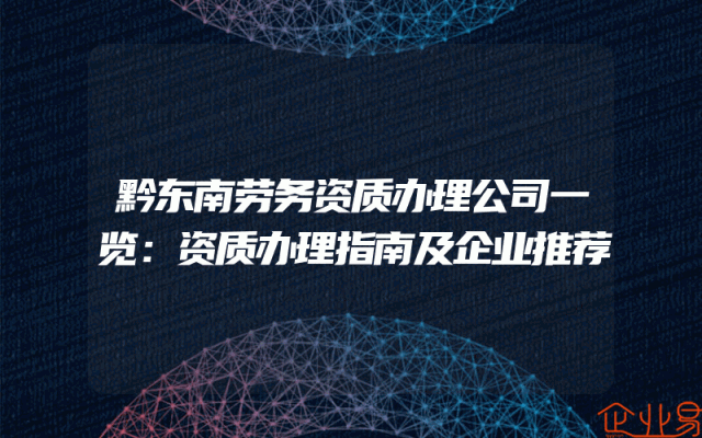 - 黔东南劳务资质办理公司一览:资质办理指南及企业推荐