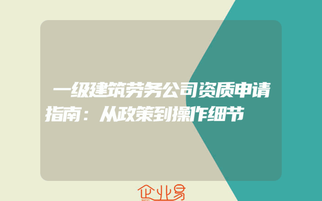 - 一级建筑劳务公司资质申请指南:从政策到操作细节