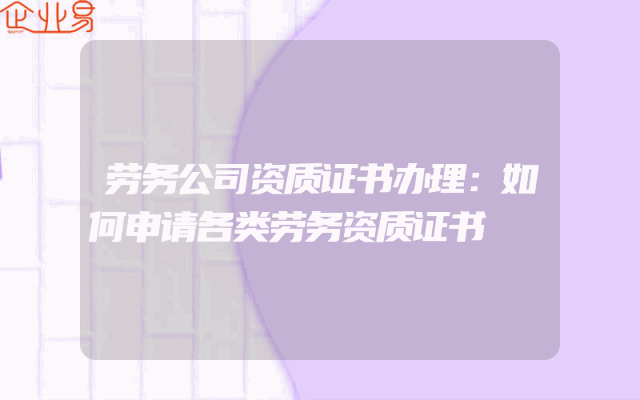 - 劳务公司资质证书办理:如何申请各类劳务资质证书
