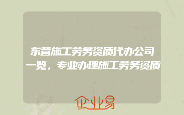 - 东营施工劳务资质代办公司一览,专业办理施工劳务资质