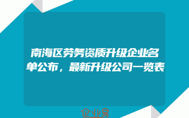- 南海区劳务资质升级企业名单公布,最新升级公司一览表