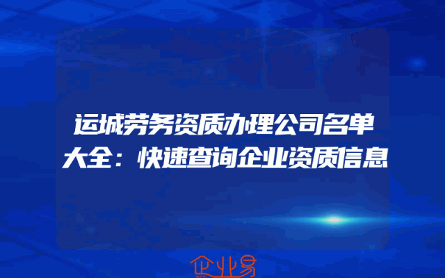 - 运城劳务资质办理公司名单大全:快速查询企业资质信息