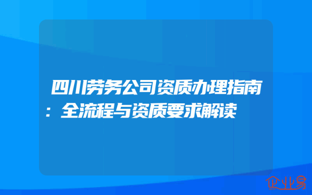 - 四川劳务公司资质办理指南:全流程与资质要求解读