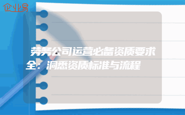 - 劳务公司运营必备资质要求全:洞悉资质标准与流程