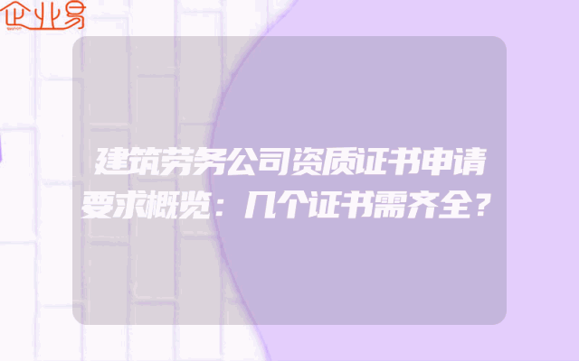 - 建筑劳务公司资质证书申请要求概览:几个证书需齐全?