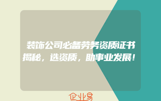 - 装饰公司必备劳务资质证书揭秘,选资质,助事业发展!