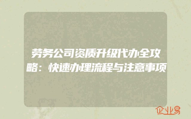 - 劳务公司资质升级代办全攻略:快速办理流程与注意事项