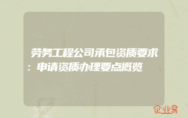 - 劳务工程公司承包资质要求:申请资质办理要点概览