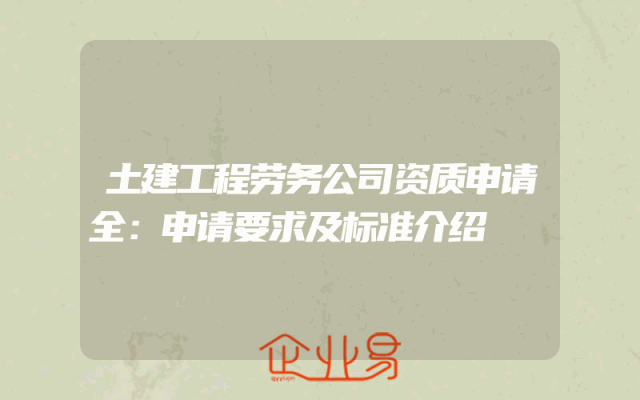 - 土建工程劳务公司资质申请全:申请要求及标准介绍