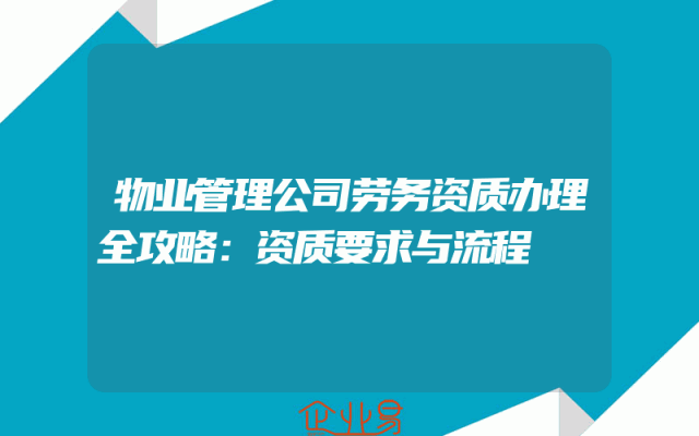- 物业管理公司劳务资质办理全攻略:资质要求与流程