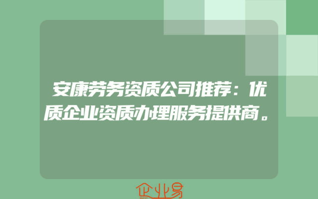 - 安康劳务资质公司推荐:优质企业资质办理服务提供商。