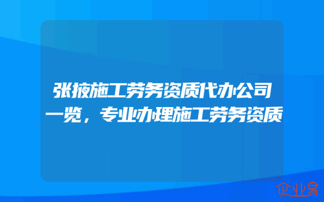- 张掖施工劳务资质代办公司一览,专业办理施工劳务资质