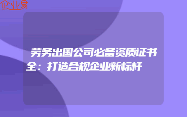 - 劳务出国公司必备资质证书全:打造合规企业新标杆