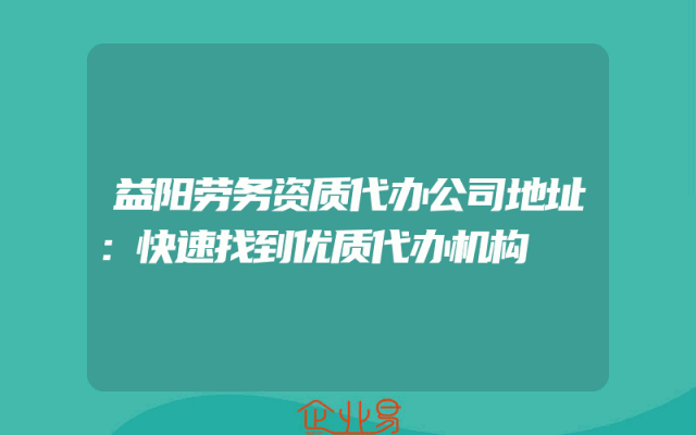 - 益阳劳务资质代办公司地址:快速找到优质代办机构