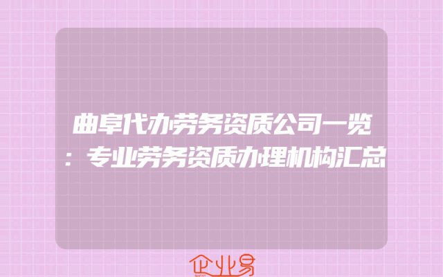 - 曲阜代办劳务资质公司一览:专业劳务资质办理机构汇总